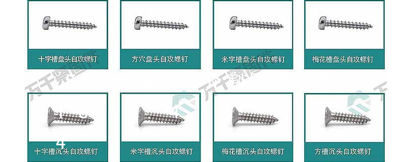 (鐵板牙自攻螺絲) B-2: Plastic Tapping Screw. ( 塑料用, 自攻螺絲)C: Wooden Screw : 木工螺絲D: Drywall Screw : 水泥墻螺絲E: Self Drilling Screws 鉆尾螺絲(不銹鋼鉆尾螺絲,復(fù)合材料鉆尾螺絲) E-1:STAINLESS STEEL SELF DRILLING SCREWS 不銹鋼鉆尾螺絲 E-2:Bi-Metal Self Drilling Screws 復(fù)合材料